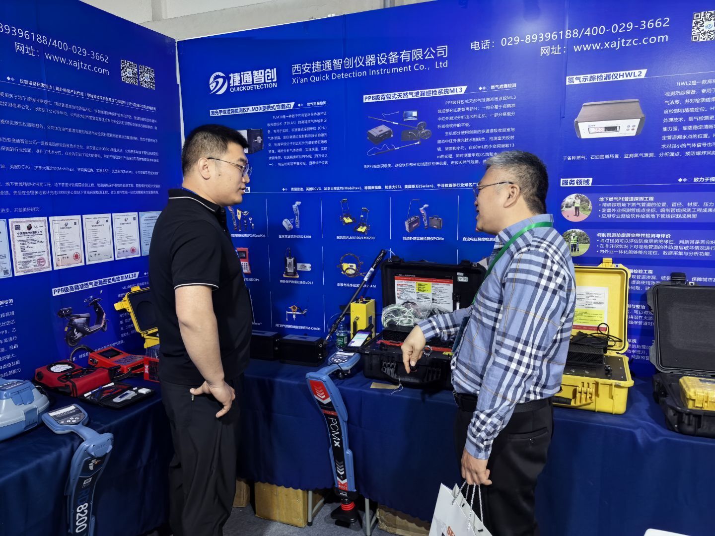 如果展会首日是惊艳亮相,那么今天则是深度体验。1041展位,捷通智创自主研发生产的一系列燃气PE管道声波定位仪和PPB级高精准燃气泄漏巡检系统(车载及背包式)产品及激光甲烷泄漏检测仪产品和众多代理产品一经亮相,便受到了众多客户的喜爱,瞬间燃动现场。引得专业观众纷纷拍照记录、深入咨询。